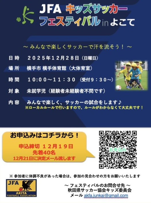 JFAキッズサッカーフェスティバル2025秋田inよこてのご案内です。