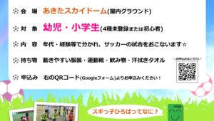12月のAKFAスギっ子ひろばの開催日が決定しました! 対象は、幼児/小学生の4種未登録または初心者 となります。 サッカー未経験なお子さまでも参加可能です! この機会に参加してみよう! みなさんのご参加、お待ちしており […]